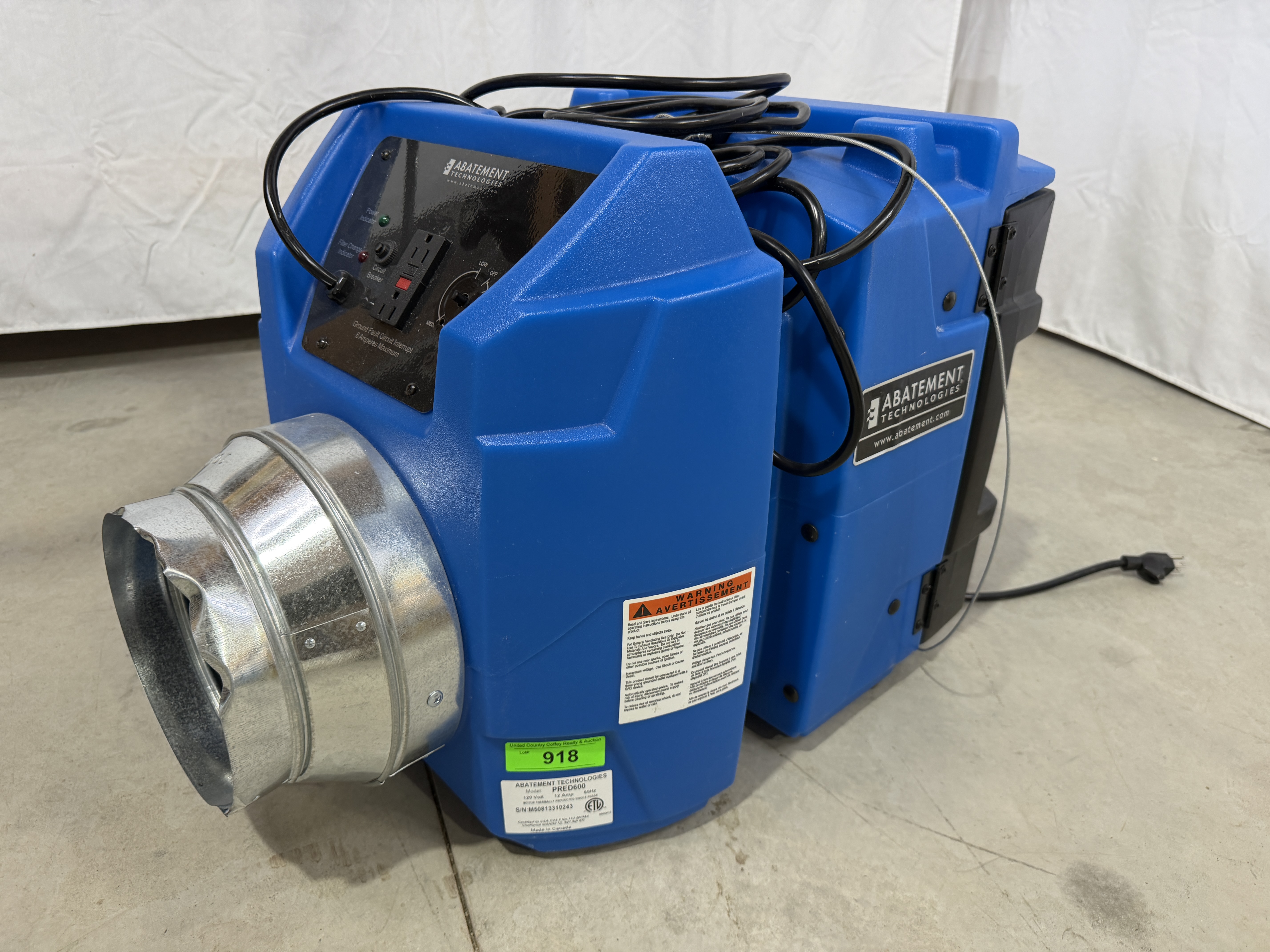 These units are designed to remove airborne particles and contaminants, improving air quality in workspaces and occupied areas. These are well-built, durable machines that are suited for heavy use. Condition is sold “AS-IS, WHERE-IS” — please review photos and bid accordingly.