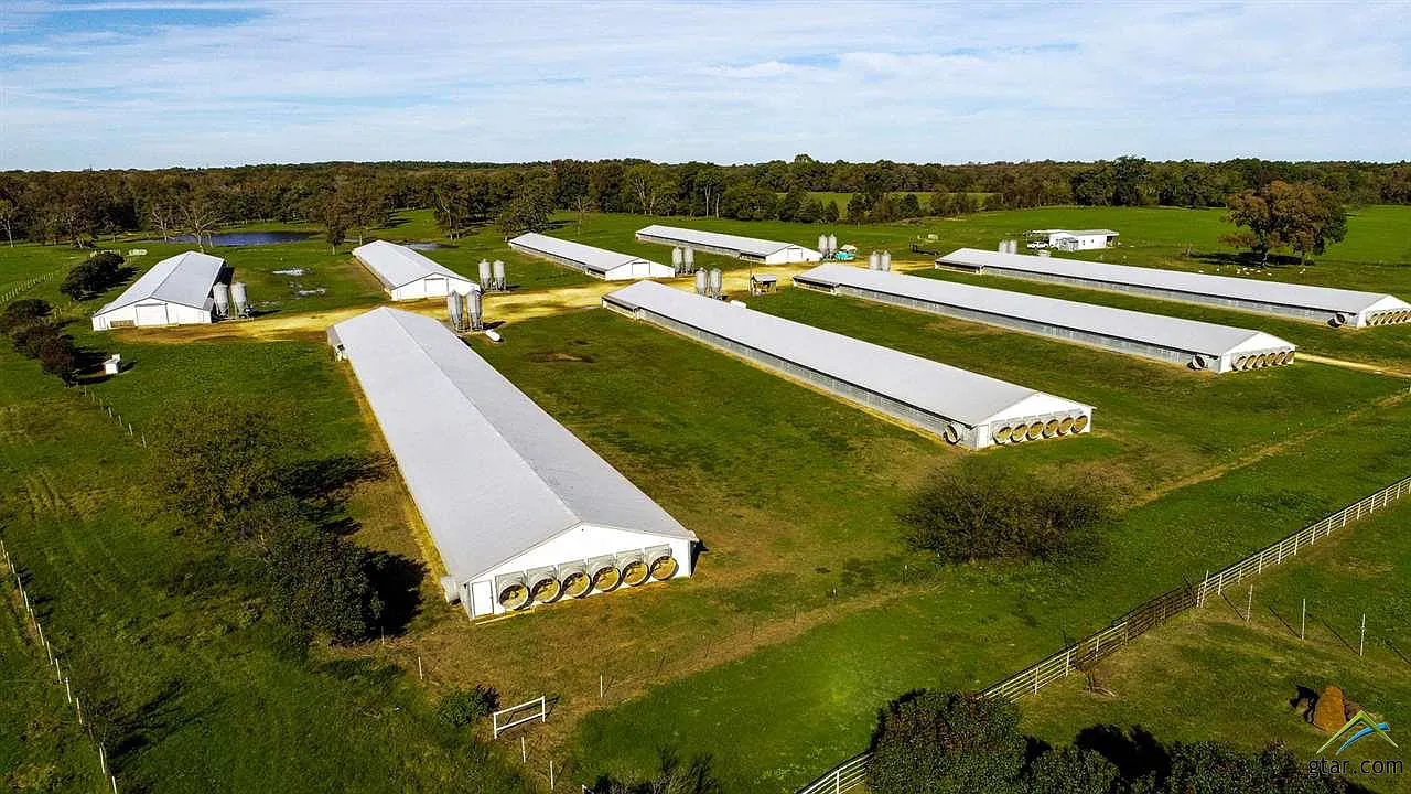 Set on an impressive 168 acres in the heart of Wood County, this distinguished poultry farm offers a rare blend of productive agricultural land and comfortable living. Located near Quitman, Texas, the property features eight expansive poultry barns, each measuring 300 feet by 40 feet, designed to support a thriving poultry operation. These barns are complemented by a stocked pond, providing a serene water source and enhancing the farm’s natural appeal.